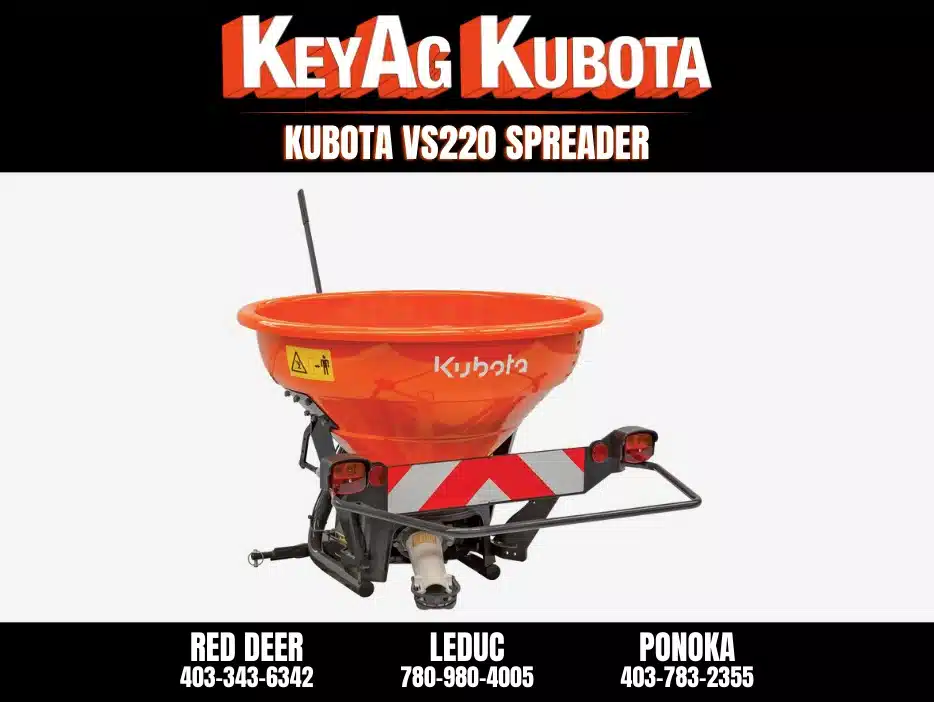 Ideal for vineyards, golf courses and general farm applications, the Kubota VS600 Fertilizer Spreader has a wide range of applications. This spreader can be controlled manually, electronically or hydraulically for complete control over your spreading needs. A polyester, glass fiber reinforced hopper means this equipment is ready for the long haul and with a wide range of spouts to select from, to give your grounds the precise care and attention they need.